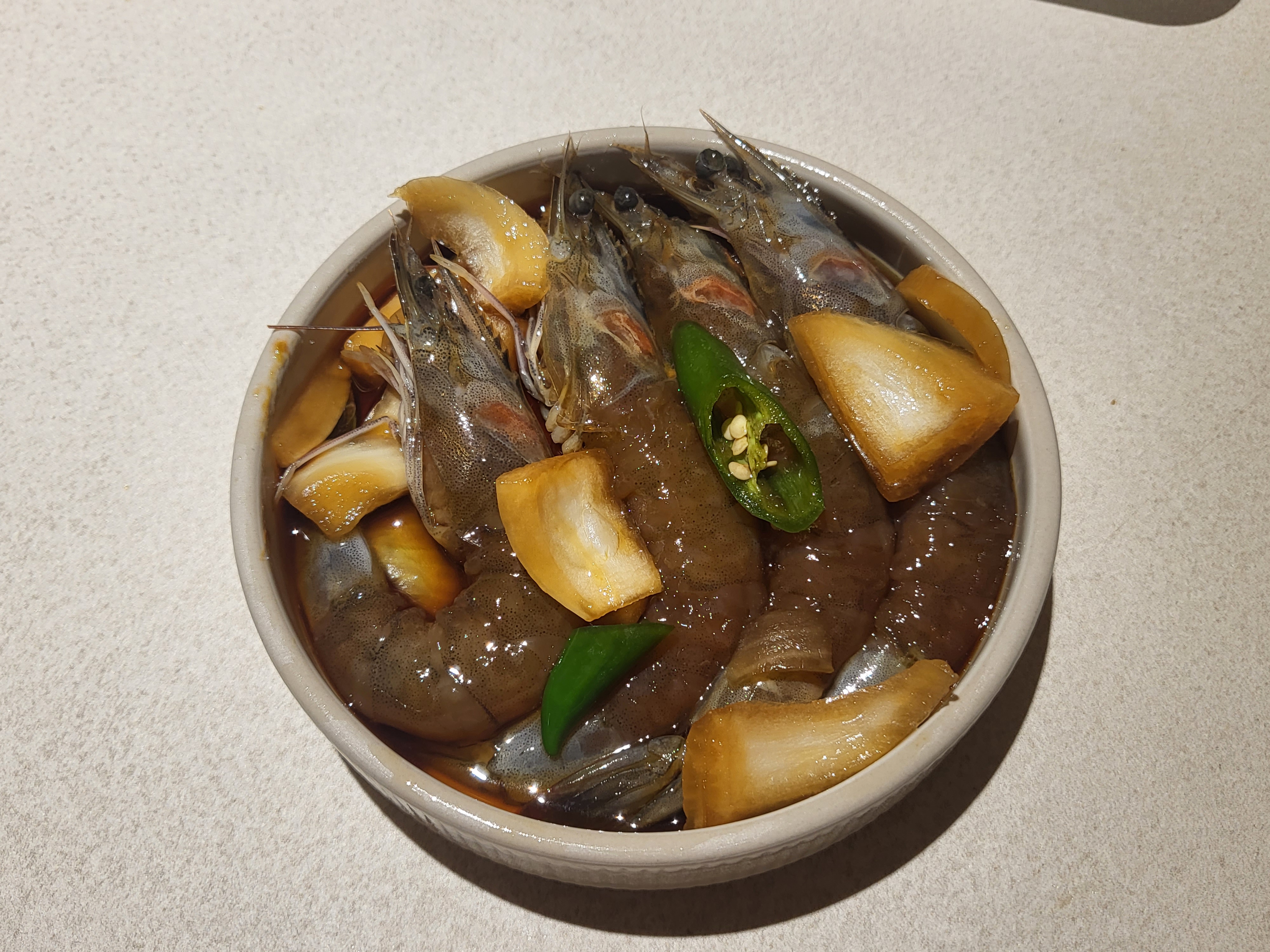 머리는 취향껏 떼고 담아도됩니다 저는 비쥬얼과 새우내장을먹기위해 머리를 남겨뒀습니다.